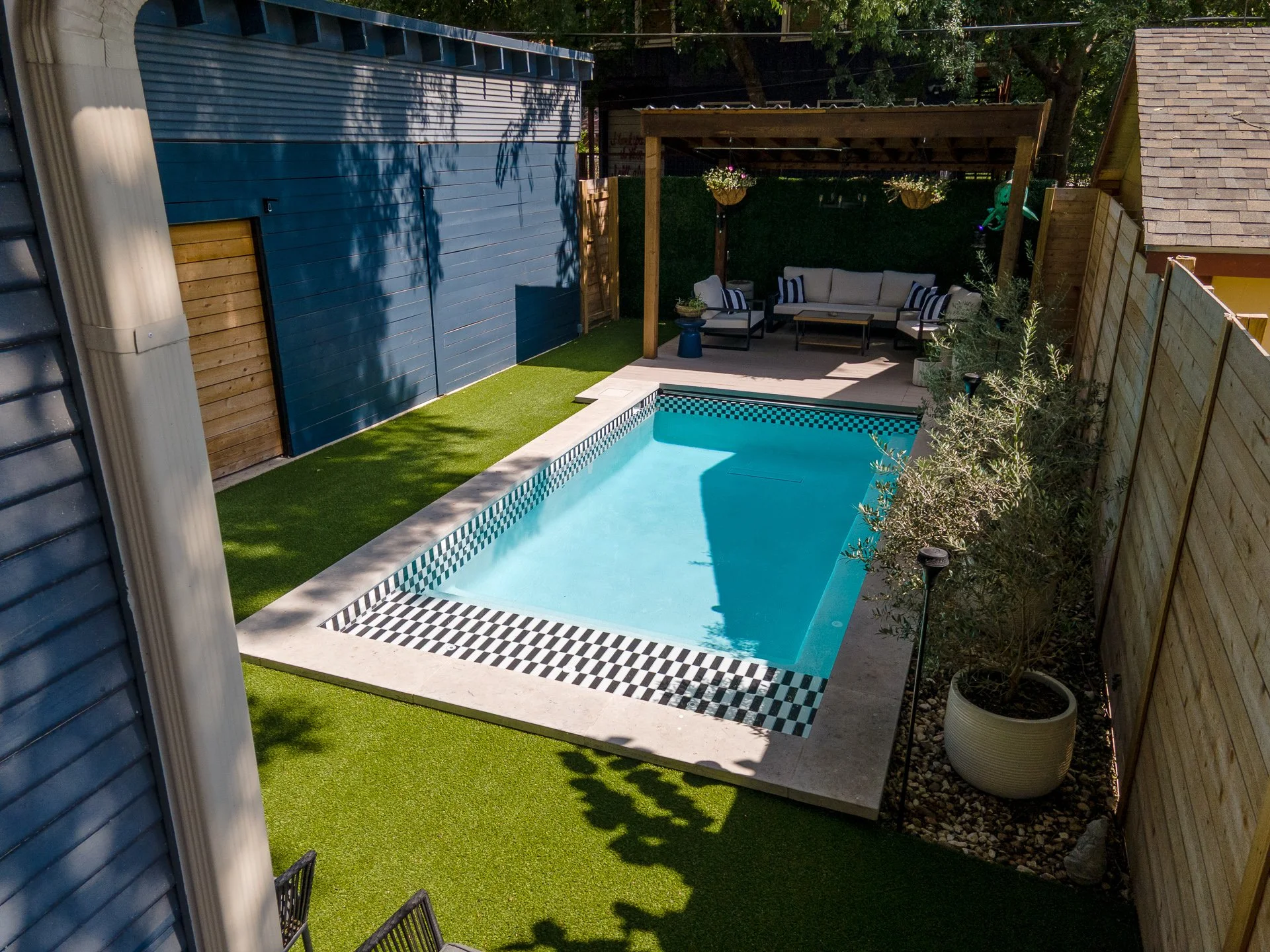 We transformed this tight East Austin backyard into a year-round escape, perfectly tailored for our clients' lifestyle. At 10'x20', this Tiny Pool maximizes every inch of this backyard in the Holly neighborhood. It's more than just a place to swim—it's an oasis built with intention: